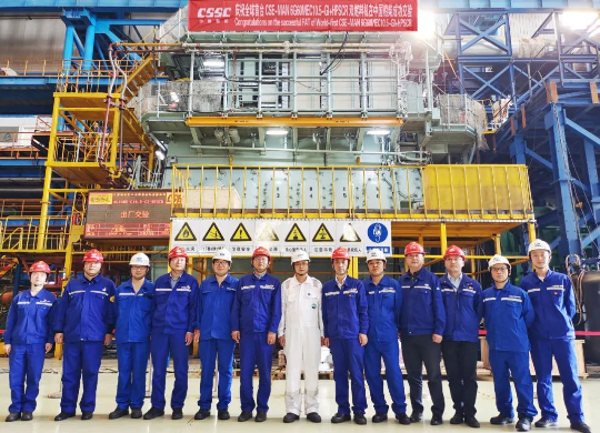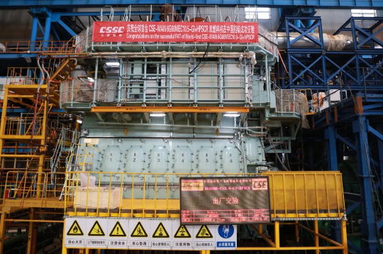 5月24日,全球首臺MAN 6G60MEC10.5-GI+HPSCR高壓雙燃料發(fā)動機在中國船舶集團旗下中國動力子公司中國船柴青島總裝廠成功交驗。