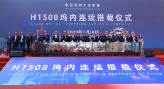 大型郵輪工程是中國船舶集團(tuán)貫徹習(xí)近平總書記重要指示精神、落實(shí)國家戰(zhàn)略、滿足人民美好生活需要的重大舉措,也是中國船舶集團(tuán)強(qiáng)化科技創(chuàng)新、促進(jìn)轉(zhuǎn)型升級、推動高質(zhì)量發(fā)展的一號工程。2018年11月6日,中國船舶集團(tuán)與美國嘉年華集團(tuán)、意大利芬坎蒂尼集團(tuán)在首屆中國國際進(jìn)口博覽會上正式簽訂2+4艘13.5萬總噸Vista級大型郵輪建造合同,并舉行了中國船舶集團(tuán)大型郵輪項(xiàng)目工程正式啟動儀式。這是我國首次簽訂真正意義上的大型郵輪建造合同,開啟了中國船舶工業(yè)建造大型郵輪的新時(shí)代。2019年10月18日,中國首制大型郵輪在外高橋造船正式開工點(diǎn)火進(jìn)行鋼板切割,全面進(jìn)入實(shí)質(zhì)性建造階段。一年多來,在中國船舶集團(tuán)的堅(jiān)強(qiáng)領(lǐng)導(dǎo)下,在中船郵輪科技發(fā)展有限公司、中船第九設(shè)計(jì)研究院工程有限公司、上海船舶工藝研究所等兄弟單位的大力支持下,外高橋造船經(jīng)受住了新冠肺炎疫情的洗禮和考驗(yàn),克服了物資采購、薄板車間流水線建設(shè)滯后等一系列困難,一步一個腳印,如期實(shí)現(xiàn)了塢內(nèi)連續(xù)搭載總裝的里程碑節(jié)點(diǎn)。