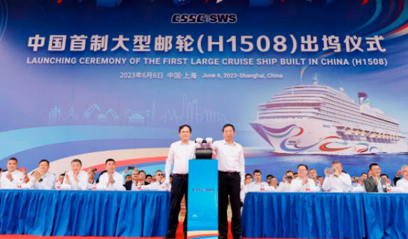 中國船舶集團(tuán)黨組副書記、總經(jīng)理楊金成宣布大型郵輪出塢正式啟動,并與上海市委常委、浦東新區(qū)區(qū)委書記朱芝松共同推動啟動裝置。中國船舶集團(tuán)黨組成員、副總經(jīng)理孫偉致辭。