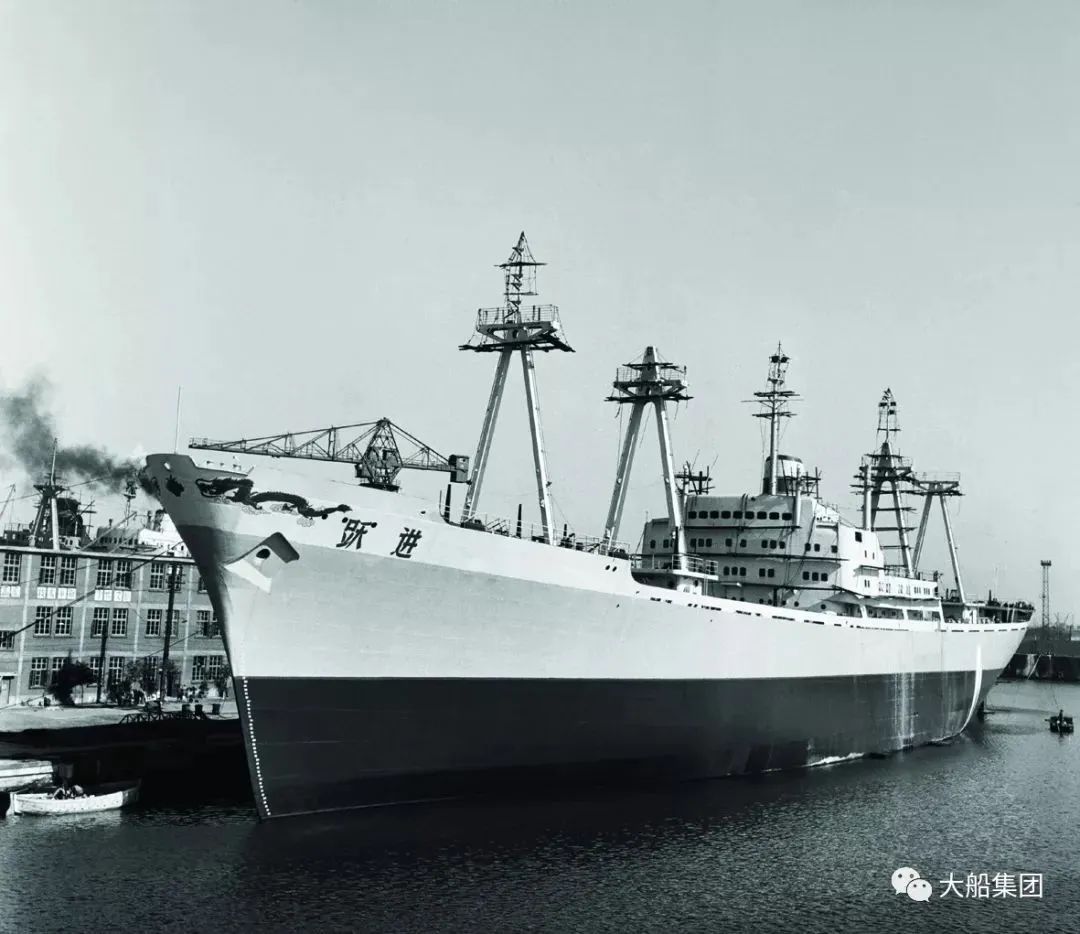 1958年大連,1958年11月,我國第一艘萬噸級遠洋貨船“躍進”號在大連造船廠下水,這艘船采用的是從蘇聯引進的成套設計圖紙和設備材料。
